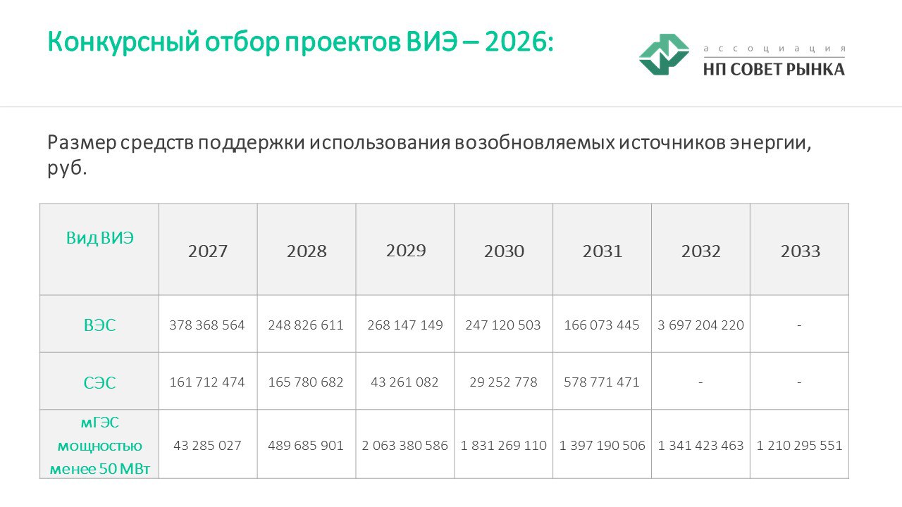 Отбор ВИЭ будет проводиться отдельно в отношении генерирующих объектов