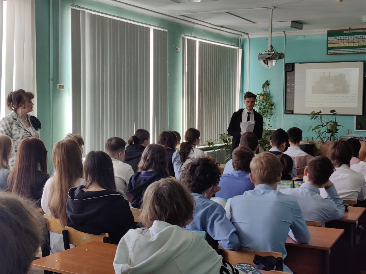 Сотрудники Филиала АО «СО ЕЭС» Воронежское РДУ в преддверии Дня защитника Отечества организовали для учащихся средней школы № 71 мероприятие «О трудовых и ратных подвигах работников топливно-энергетического комплекса».