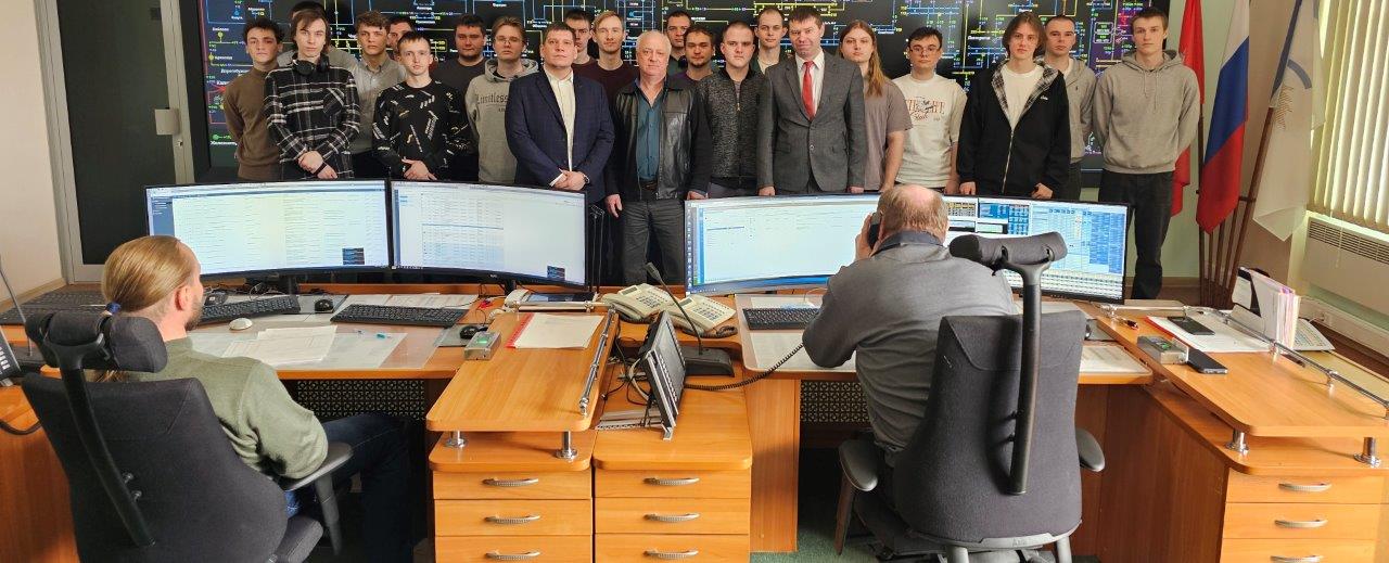 В диспетчерском зале будущие энергетики смогли наблюдать за работой диспетчерской смены в режиме реального времени, узнали, какие современные технологии используются для контроля параметров электроэнергетического режима.